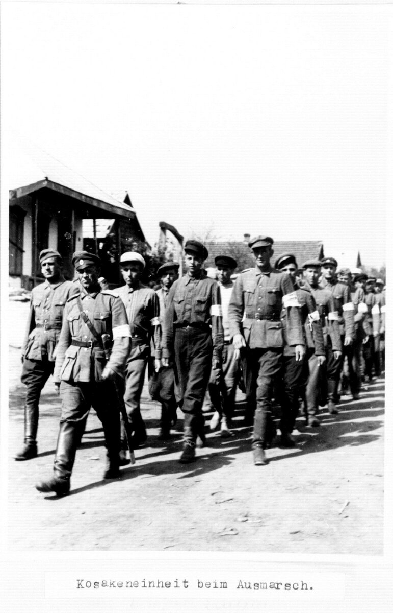 Принято писать так: «Тысячи и тысячи казаков, сотрудничавших во время оккупации с немцами, справедливо опасаясь прихода Красной армии и будущей расплаты за предательство, были вынуждены бежать с родной земли. Конечно, с немцами ушла меньшая часть казачества, — большинству бояться было нечего, они с нетерпением ждали прихода Красной армии».