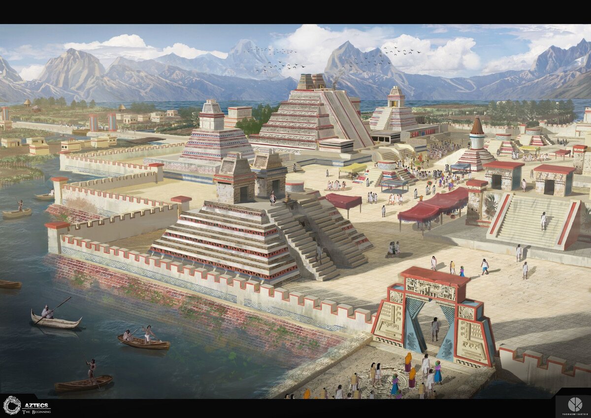 Теночтитлан — ацтекский альтепетль (город-государство), находившийся на месте современного города Мехико. Был основан примерно в 1325 г. на острове посреди солёного озера Тескоко, в 1521 г. был разрушен испанскими конкистадорами под руководством Эрнана Кортеса. Название Теночтитлан состоит из двух топонимов и буквально переводится, как «Город Теноча» и был назван в честь легендарного вождя Теноча, основавшего город. Древние ацтеки были охотниками-кочевниками. Они кочевали на территории современной Северной Америки. По легенде родиной Ацтеков было мифическое место Ацтлан, а Бог солнца и войны Уицилопочтли сказал индейцам, чтобы они обосновались там, где увидят такую картину: орёл на кактусе будет держать в своих когтях добычу. Какую именно добычу сказано не было. Скитаясь в южных землях Северной Америки почти 260 лет, они увидели то, о чём говорил им бог солнца: орёл сидит на кактусе и держит в когтях змею (данный сюжет теперь отображен на мексиканском флаге). Согласно летописи Тлателол