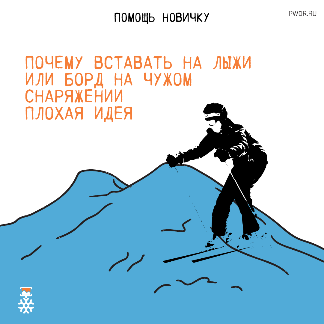 Чужие горные лыжи и ботинки могут стать вашей последней попыткой научиться кататься на горных лыжах. Если тот, кто одолжил лыжи хорошо катается, то его лыжи могут обладать такими техническими и физическими характеристиками, которые для новичка окажутся совершенно не подходящими. Такие лыжи могут быть жесткими или длинными/короткими, не говоря о других нюансах. Человек, который только встает на лыжи, не будет знать, что с ними делать. Он поедет как сможет и кайфа не получит, совсем. Это приведет к отторжению. Хуже будет, если он упадет или травмируется, а может и собьет в неуправляемом полете других гостей курорта, как это часто бывает. Я работаю в магазине в горах и часто слышу истории посетителей, что лыжи или сноуборд не для меня - встала и сломала ногу. Все ухудшится, если и горнолыжные ботинки не "сядут" на ноги, а они не "садятся" в большинстве случаев. Каждая пара ботинок через процесс термоформовки индивидуально подгоняются под ноги владельца. Новым ногам в таких ботах будет