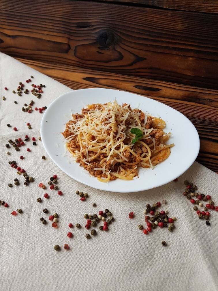 Макароны по-флотски известны всем с самого детства, мне кажется это блюдо готовили в каждом доме. Попробуйте приготовить Итальянский вариант этого блюда, уверена Вам понравится! Ингредиенты: спагетти, свино-говяжего фарша, томатной пасты, приправы для соуса болонез, воды, растительное масло для обжарки, сыра пармезан для подачи Способ приготовления: Спагетти отварить до состояния аль денте. На сковороде обжариваем фарш на растительном масле в течение 7 минут. Добавляем томатную пасту и еще обжариваем 3 минуты. Специи для болоньезе (я использовала Магги) смешиваем с водой и добавляем к фаршу. Тушим под крышкой около 10 минут на среднем огне. В получившийся соус добавляем отваренные спагетти и хорошо перемешиваем. При подаче посыпаем натёртым сыром. Приятного аппетита.