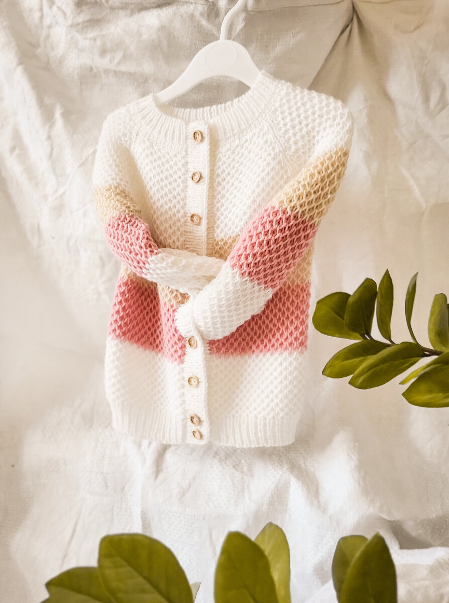 Сложного в этом узоре ничего нет, но свои нюансы имеются. Первое что нужно знать - узор поворотный. Если вязать вкруговую будет дорожка, может и есть способы соединения в круг, но я ими пока не владею. Второе, узор очень воздушный, размер спиц лучше брать самый минимальный из рекомендованных к пряже производителем. К примеру этот кардиган из пряжи Alize lanagold fine кубическими спицами 2.0 Третье, полотно очень сильно вытягивается, мигрирует после ВТО. Рекомендую образец не 10х10 см как обычно, а хотя б 20х20. Расчет лучше производить по изнанке. Четвертое, обязательно считайте ряды. Потому как если отложить работу, вернуться без понимания четности ряда сложно, большая вероятность совершить ошибку и тогда лицевая с изнаночной стороны поменяются местами. Пятое, если вяжете регланом сверху, то оставляйте по одной дополнительной петле, которая не будет участвовать в раппорте, с каждой стороны регланной линии, помимо тех, что будут задействованы в реглане. Те, если у вас на реглан задейст