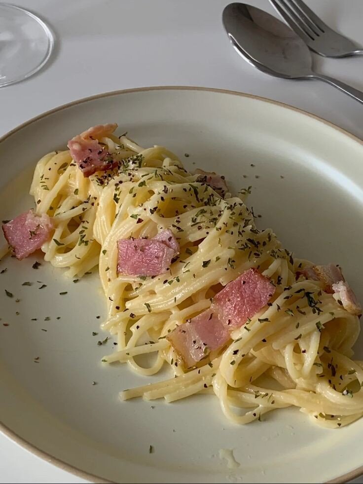 Ингредиенты: спагетти 200гр, вода от макарон 50мл, желток 2шт, яйцо 1шт, перец чёрный и соль по 1/2ч.л, пармезан 50гр, бекон 100гр Приготовление: Соус: 1.Натераем сыр на мелкой тёрке 2. Яйца и желтки солим, перчим и взбиваем до однородной массы Паста: 1. Спагетти отваливается до состояния альденте 2. Обжариваем бекон и добавляем к нему на сковороду отваренные макароны 3. Добавляем наш соус, вливаем 3 ст. л. воды из под спагетти в сковороду 4. Выключаем огонь и тщательно перемешиваем Всем приятного аппетита!