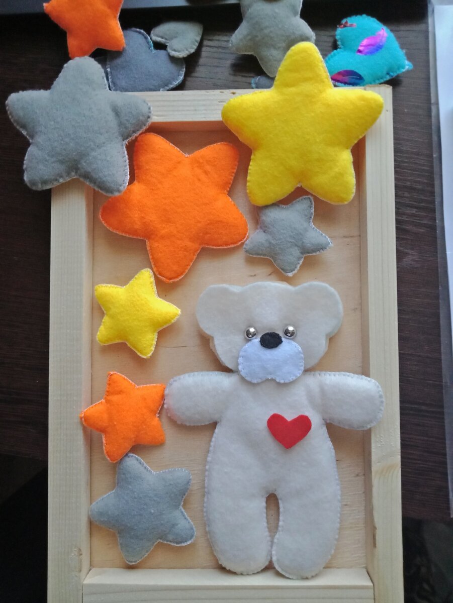 Сборка этих фетровых картин началась с рамки. У меня появилась куча деревянных рамочек и я все думала чтобы с них можно было сделать. На просторах интернета нашла картины из объемных фигур. И меня захватила эта идея! Это тоже входит в коллекцию моих первых работ.... Я думаю получилось интересно! Буду продолжать в том же направлении!!!