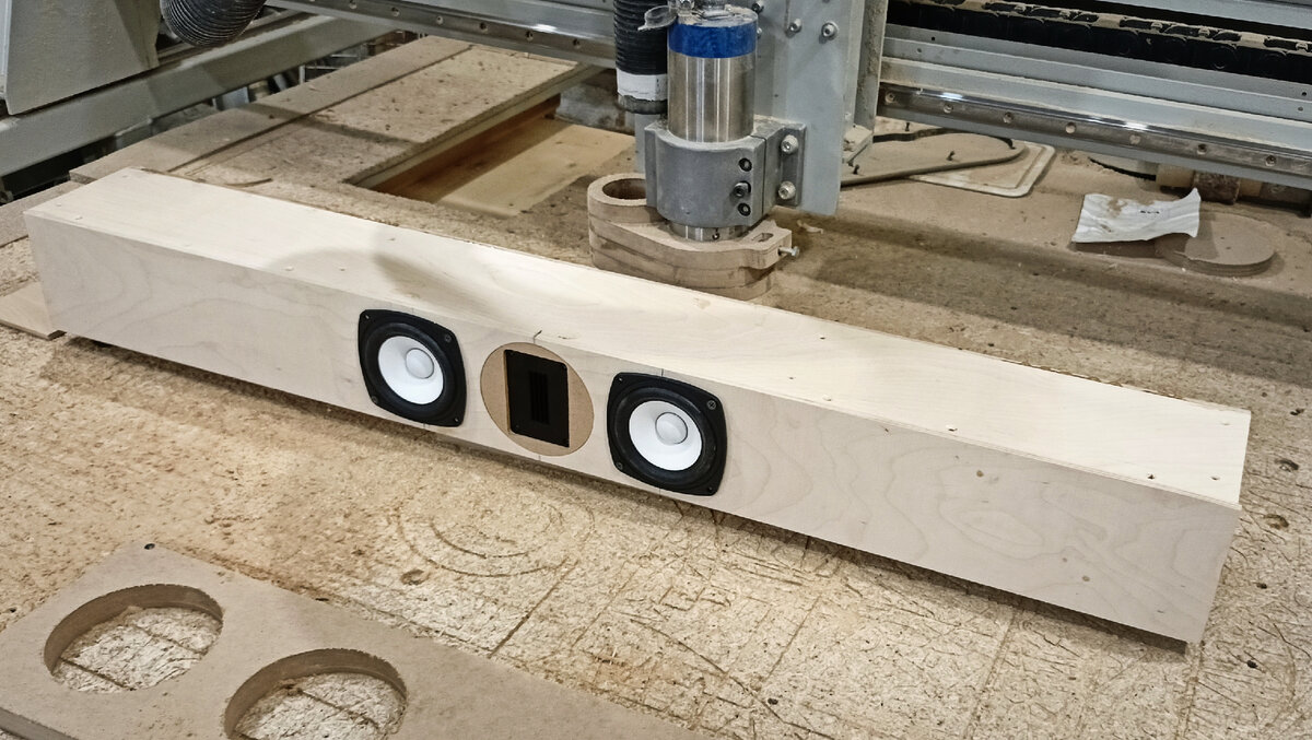 В работе проект центрального канала. Набор динамиков вполне стандартный для такого рода акустики: 2 НЧ/СЧ динамика и один высокочастотник. Расположение тоже самое обыкновенное, пищалка между серединок. Есть желание поэкспериментировать с глубиной расположения динамиков, чтобы более точно согласовать их по импульсу. Серединки нужно выдвинуть вперёд, пищалку наоборот задвинуть назад. Для этого я не делал фрезеровки под фланец среднечастотников, тем самым, они выдвинулись на 4мм - уже есть результат!:) Но этого определенно будет не достаточно, пищалку нужно будет заглублять. Сегодня тестируем вариант реализации такого заглубления: В этой статье не будем рассматривать вопрос согласования динамиков. Сегодня меня интересует следующее: не будут ли все эти грани и выступы вокруг пищалки создавать дополнительные проблемы? Чтобы это выяснить, я снял АЧХ динамика совсем без корпуса Он запущен через конденсатор, незначительно и плавненько подрезаются низкие частоты. Фильтрация будет неизменной,