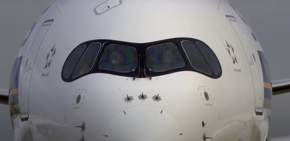 Вы когда-нибудь замечали, что у некоторых пассажирских самолётов есть обрамление чёрного цвета вокруг остекления кабины пилотов? В основном такую "маску на окна" любит использовать компания Эйрбас. И их новый А350 как раз имеет такую интересную особенность, напоминающую не то маску Зорро, не то подводку для глаз. Так зачем же она нужна, и почему на других самолётах, например на Боингах, ничего похожего нет? Причём если взглянуть на кабины пилотов предыдущих Эйрбасов, то мы можем видеть обычное угловатое остекление без каких-либо окрашенных в чёрный свет контуров. Плюс ко всему стёкла новых А350 имеют явно выраженные скругления для уменьшения концентраций механических напряжений в местах крепления этих стёкол к алюминиевой раме. В результате эта силовая рама кабины стала немного тоньше и легче, и всё это благоприятно сказывается на весе самолёта. Такая задача ставилась исходя из желания Эйрбаса создать самый энергоэффективный пассажирский самолёт. И судя по параметрам экономичности, у