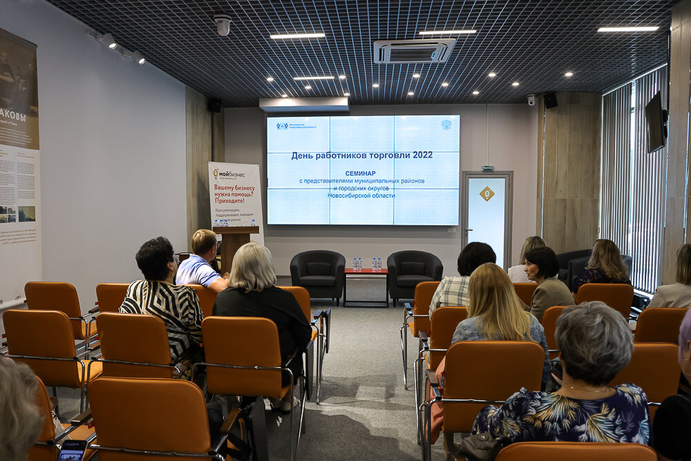 В преддверии Дня торгового работника 15 июля Министерство промышленности, торговли и развития предпринимательства Новосибирской области провело ряд мероприятий для бизнес-сообщества региона. Так, в центре «Мой бизнес» состоялся образовательный семинар с представителями муниципальных районов и городских округов НСО. Предприниматели обсудили основные тренды в сфере торговли товарами повседневного спроса, а также вопросы доступности объектов потребительского рынка, актуальные изменения действующего законодательства в области защиты прав потребителя, финансовые меры поддержки малого и среднего бизнеса и другие актуальные темы. Также наиболее отличившимся предприятиям региона были вручены грамоты Министерства промышленности, торговли и развития предпринимательства НСО «За заслуги в развитии торговли в Новосибирской области» и благодарности. В мероприятии принял участие заместитель руководителя департамента развития внутренней торговли, легкой промышленности и потребительского рынка Минпромт