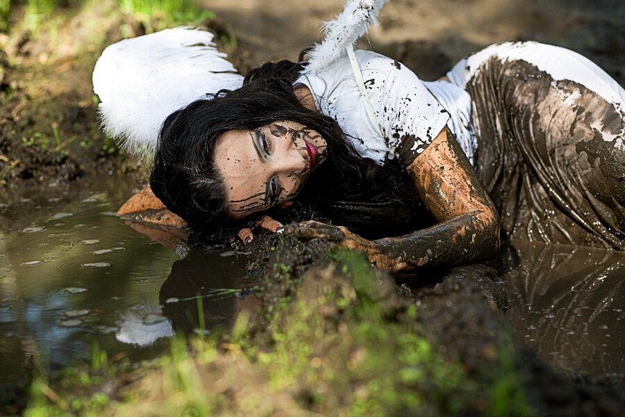 Упали крылья, кровь залила спину.