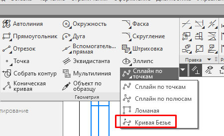 Кривая Безье в КОМПАС позволяет строить кривые произвольной формы, например, часто именно кривой Безье показывают волнистую линию при построении вида с разрывом. Пошаговая инструкция построения Альтернативный способ запуска команды — использование главного текстового меню. Путь: Черчение — Сплайны — Кривая Безье Вызвав команду нужно последовательно указывать точки, через которые должна проходить Кривая Безье. Для построения Кривой Безье, показанной на картинке выше, понадобилось указание четырех точек. Также необходимо помнить, что, если контур будет штриховаться, то важно правильно выбрать стиль линии у кривой. Границей для штриховки являются только линии со стилем: Основная, Утолщенная, Для линии обрыва.