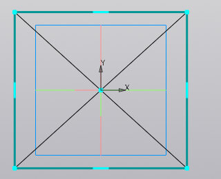 Возможен и вариант наложения контуров, как в следующем примере, где отрезок лежит на прямоугольнике. Такой эскиз также может участвовать в операции по траектории, только результатом будет тонкостенная оболочка.