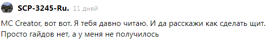 Доброго времени суток, дорогой читатель! В данном гайде, мы сделаем щит. Идея: Щит Для начала заходим в BlockBench и создаём блок/предмет Java (Block/item java). Теперь, создаём нашу модель щита: После создания модели, можно добавить текстуру, что я уже и сделал (Текстуру щита можно найти тут) Теперь настраиваем предпросмотр как вам нужно. После успешной настройки экспортируем модель: Теперь возвращаемся в предпросмотр и меняем вид от первого лица, чтобы сделать модель во время использования щита. Экспортируем модель под другим названием. Заходим в MCreator -> Recources и импортируем туда текстуру(как block и как Item) и наши модели(как JSON). Теперь, заходим в окно Variables и нажимаем Add new variable: Нажимаем OK. Теперь, заходим в наш щит (Обычный) -> Триггеры -> When right-clicked (entity pos.) и нажимаем на плюсик. Затем нажимаем на плюсик справа сверху: Опять нажимаем на OK. Теперь делаем так, как показано ниже: Предмет из Set item in off-hand of Event/target entity to 1 - актив