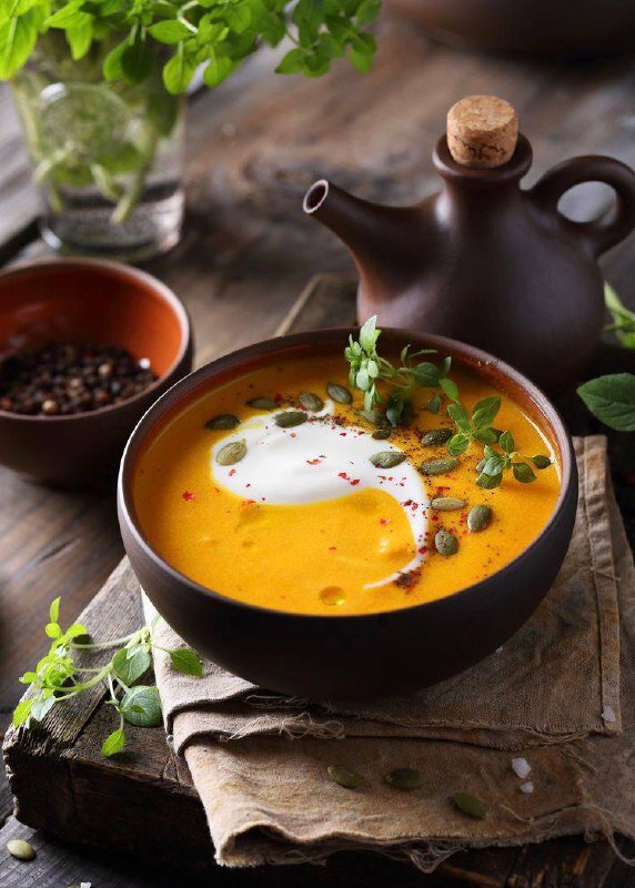 Летом всегда хочется чего-то легкого, красивого и вкусного😃 Предлагаю приготовить яркий обед, который наполнит энергией и сохранит прекрасную форму! Давайте рассмотрим пользу основного ингридиента. Тыква - продукт, который применяют как естественное средство очищения организма, в программах лечебных диет, для улучшения обмена веществ. Состав тыквы: Какую пользу приносит нам этот "солнечный" овощ: Итак, приступим к приготовлению! Тыквенный крем суп с креветками на кокосовом молоке.