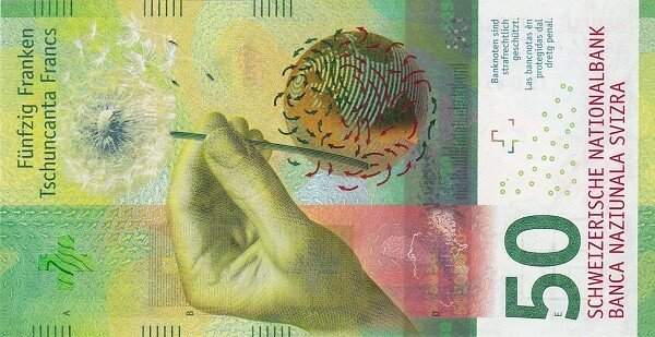 Выпуск в обращение тысячных билетов (с 70-х годов называющихся на жаргоне fourmis – муравьи) был сначала под вопросом. У властей были опасения, что купюры такого достоинства могут быть использованы для ухода от налогов или отмывания денег. Однако, эксперты пришли к выводу, что эти риски не столь велики и осенью 2019 года «муравьям» дали зелёный свет. Сюжетом было выбрано единение человечества и его языковое разнообразие. Руки, сложенные в рукопожатии – самый яркий символ этого (к слову, подобный рисунок был использован на сингапурских купюрах, где он символизировал равноправие и дружбу основных этнических групп населения Сингапура). Вокруг глобуса показаны буквы международного фонетического алфавита, а на кинеграмме – кантоны Швейцарии, разделённые по языковым регионам. В стране - четыре государственных языка и, чтобы подчеркнуть их равенство, на обороте изобразили дебаты в швейцарском парламенте (как и у нас, в Швейцарии он называется Федеральным Собранием).