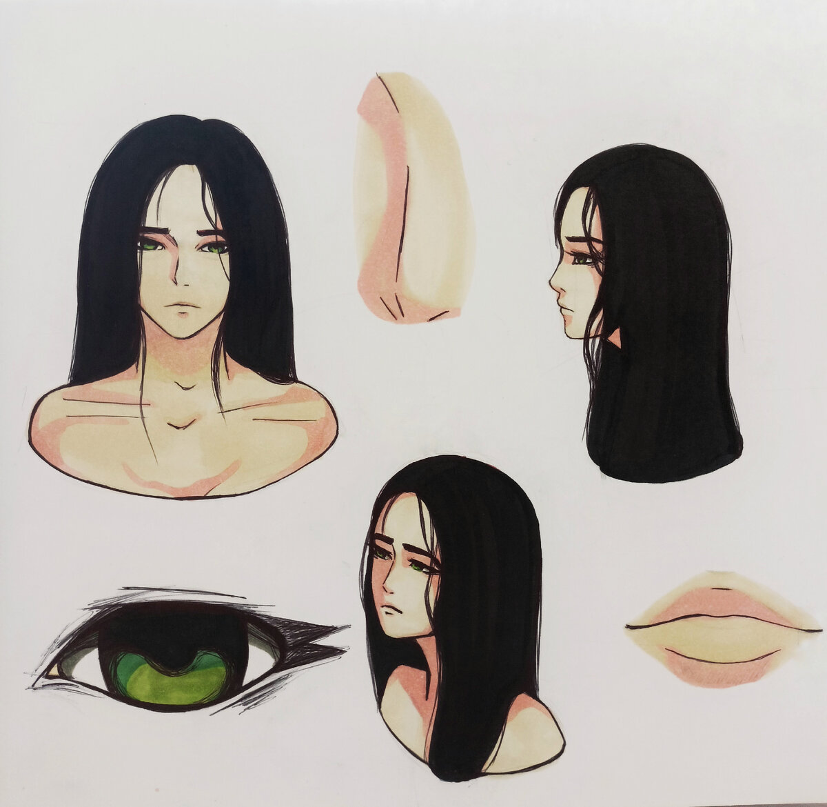 Вот и пришло время задуматься над своим ОС. (ОС-Это сокращение от Original Character. Означает, что изображенный на рисунке персонажи придуман самим художником). Никогда раньше я не думала над тем, чтобы создать своего персонажа, использовать его в артах и всяких челленджах, но....почему бы и нет? Дело в том, что я отношусь к тем художникам, у которых нет своего устоявшегося стиля в рисовании. Каждый раз пробуя что то новое я кайфую, а создавать даже серии из 2-3 работ становится для меня немного нудно. Я не вижу в этом ничего плохо и даже на оборот считаю, что это помогает мне в развитии своих навыков. Ведь даже если ты думаешь что у тебя нет своего стиля - он есть. То, как ты рисуешь- и есть твой стиль. Единственный и неповторимый. Сейчас я продолжаю развиваться в создании своих персонажей и данная работа является разработкой моего ОС. Для начала я решила создать лицо и голову в анфас, потом в профиль и разворот. Для заполнения пустого пространства послужили увеличенны