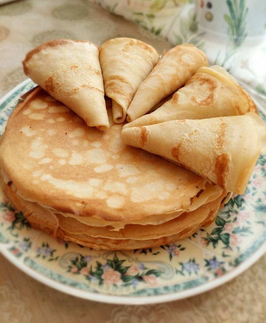 Рецепт быстрых и вкусных блинов. В рецепте присутствуют точные граммовки а также для тех у кого нет весов. Калорийность : 1 блин= 84 ккал. 100 гр= 180 ккал. Ингредиенты: молока, яиц, Сахара, соли, соды, растительного масла, муки, Для жарки, Растительного масла Способ приготовления: Наливаем молоко в большую миску, кладём яйца, сахар, соль, соду, масло, добавляем муку (обязательно просеиваем муку через сито). Перемешиваем все миксером в течение 4 минут. Должна получить такая консистенция. Если у вас получилось чуть жиже, добавьте ещё одну ст. ложку муки. Смазываем сковороду небольшим количеством масло (желательно брать блинницу), жарим на среднем огне. Берём половник набираем в него блинную смесь и аккуратно разливаем по сковороде. Как бока подрумянились, аккуратно переворачиваем блины. Готовый блин кладём на тарелку, и на него последующие. Блины готовы, приятного аппетита! У вышло 21 блин.
