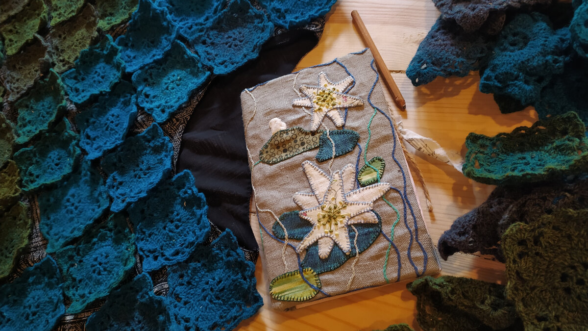 Мы вяжем, вяжем, вяжем, а лето жжëт и жжëт... Не бралась за шерсть 2 недели, а отчëт писать надо. Предыдущая статья здесь: Притащила гору связанных ранее мотивов, вывалила на стол. Украсила натюрморт вазочкой с цветами. И мандаринками. Красотища, правда? А вот и нет. Сейчас я вам покажу общий план: Успела визуально наиграться примерно так: Баррикады из шерстяных кружевинок были бильярдно смяты рыжими хулиганистыми ароматными мячиками (опять же и моль отпугнут, надеюсь). Что в фокусе - непонятно, а вдали прекрасное Древо жизни, созданное Алевтиной Шевалдиной. Как же волшебно это лоскутное панно поддерживает мои вязальные опыты, правда? И расписное дощатое панно, кстати, тоже присутствует во многих фотосессиях этого проекта - попытке создания наряда для владычицы морской. Этап, который я сейчас прохожу - раскладка мотивов для сборки туники. Как видите, задача не простая. Они ж не просто разноцветные, а ещё и с переходами оттенков. Восторг и ужас до полного ступора, в котором я
