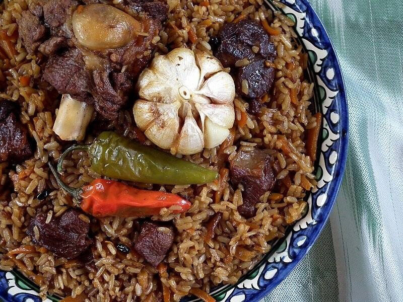 Ферганский плов Родина рецепта Ферганская долина, где растет девзира и родственные ей сорта риса. К чему нужно стремиться, чтобы получить ферганский плов: Чайханский плов (чойхана палов) Традиционный, массовый плов Ферганской долины, Ташкентской области. Готовится в общественных местах типа чайхана. Похож на ферганский, с отличиями: Ташкентский плов Праздничное блюдо. Отличается большим количеством разных добавок - нут, яйца, казы, хасип. Готовится с большим куском курдюка, который потом разрезается и подается Самаркандский плов Праздничное блюдо. Отличается способом приготовления: никакие слои не перемешивается даже зирвак. Подача обратная к закладке: снизу рис, далее овощи и мясо. Бухарский плов Он же ош-и-софи. Чем-то похож на самаркандский. Первый, можно сказать, нетрадиционный рецепт в подборке. Все ингредиенты готовится раздельно и потом доводятся в казане (дег-и-мис). Также его можно готовить в вертикальной кастрюле с толстым дном. Лёгкий, вкусный, диетический плов. Плов по-хоре