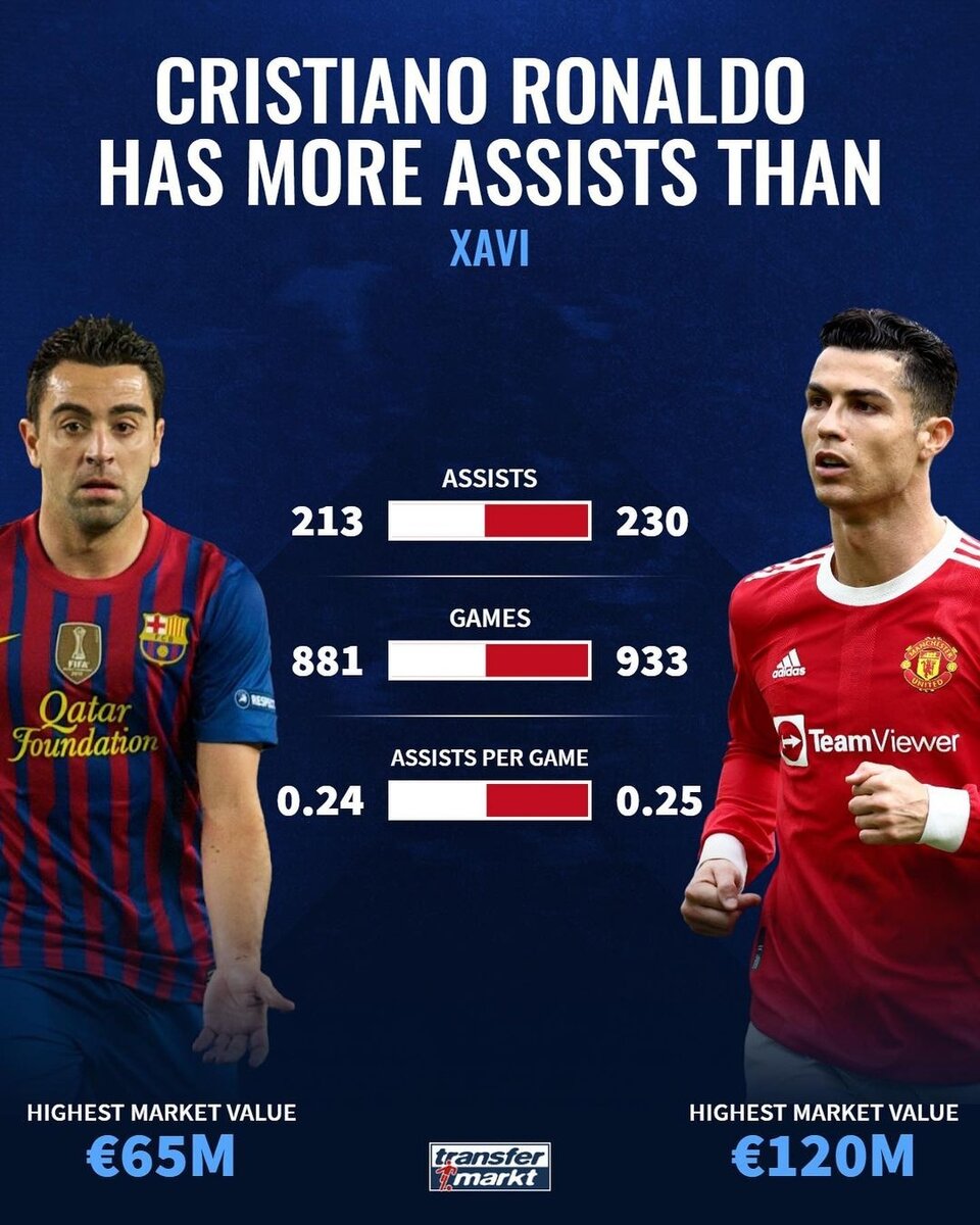 У Криштиану Роналду больше ассистов чем у Роналдиньо, Лэмпарда, Дэвида Бекхэма и Хави 👇