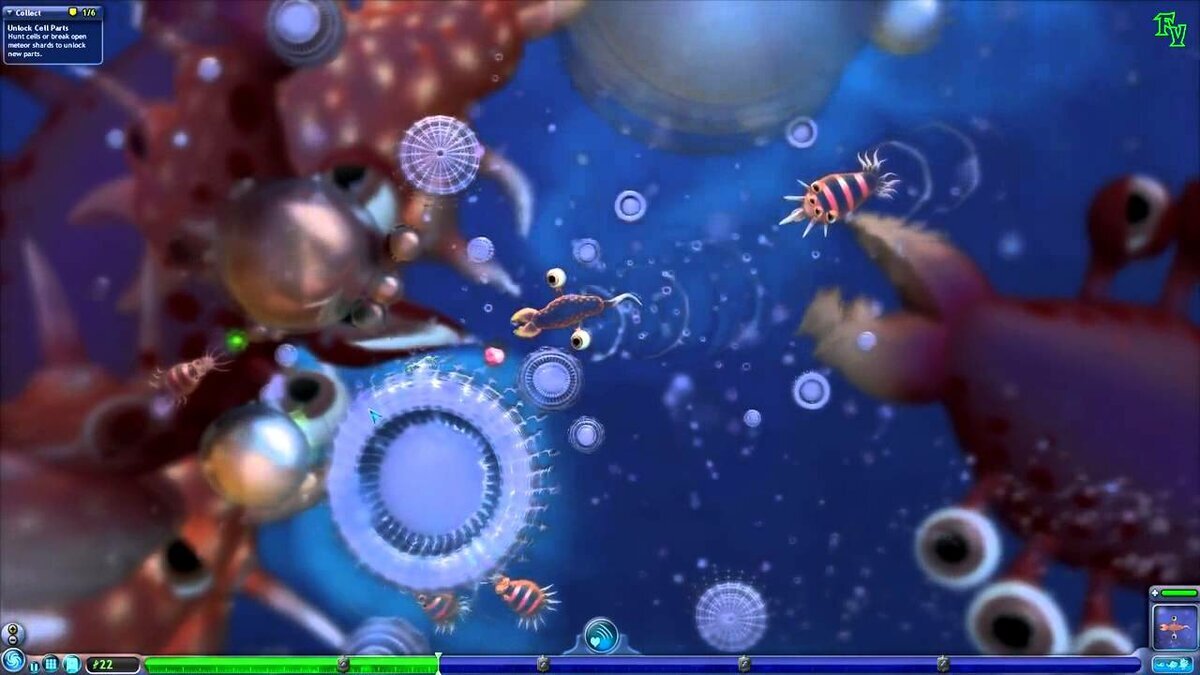 В игре «Spore» Вы развеваетесь от клетки (которая находилась в метеорите, а этот метеорит упал на планету) до космоса.