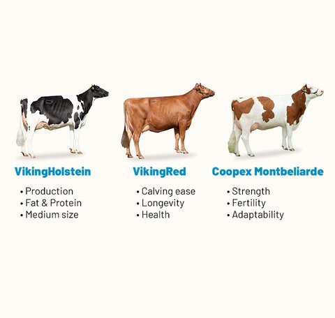 Вы боретесь с плохой плодовитостью в своем стаде? Вопросы здравоохранения? Проблемные коровы? Вы заинтересованы в том, чтобы не отставать от требований высокой продуктивности на одну корову в течение всего срока службы и долгосрочной устойчивости? ProCROSS — это система ротационного скрещивания трех пород, объединяющие такие, как Голштинская, Красная Степная и Монбильярдская. Комбинация трех пород ProCROSS дает вам: Здоровых и плодовитых коров среднего размера, долгоживущих и простых в уходе, с ежедневной прибылью +9% по сравнению с чистопородными голштинами Коровы, дающие оптимальные результаты со средним гетерозисом 86% Не беспокоится о инбридинге Научно доказано Высокопродуктивные стада в США, Германии, Великобритании, Франции, Нидерландах, Дании, Швеции, Финляндии, Италии, Испании, Португалии и других странах перешли на ProCROSS. ProCROSS, разработанный компаниями VikingGenetics и Coopex, является научно доказанным методом, основанным на самом длительном в мире исследовании коммер