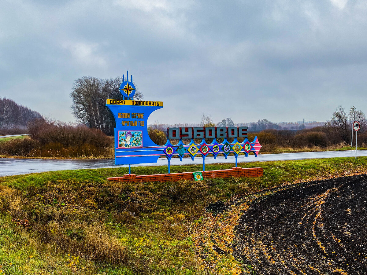 Путешествовали мы как-то с другом по Тамбовской области и решили заехать в одно село, которое называется Дубовое. Подъезжая к селу, мы проезжали яблочные сады. На деревьях висели красные, наливные яблоки. А запах спелых осенних яблок распространялся на всю округу. Так что, Дубовое можно поистине считать яблочным краем! Ну а мы въехали в село и вот уже находимся в самом его центре. Оставляем там машину и идем прогуляться по Дубовому. Очень нам понравилась такая вот необычная автобусная остановка. А рядом с ней - арт объект с названием села и яблоком, на котором написано "мичуринские яблоки". Видимо, сорта яблок, что здесь выращивают, выводил сам известный селекционер Мичурин. Да и город Мичуринск от Дубового не очень далеко. Еще рядом с остановкой стояла вот такая табличка с расстояниями до различных городов. Выходит, что от Дубового до Липецка даже ближе, чем до Тамбова, хотя село относится к Тамбовской области, а не к Липецкой. Неподалеку от автобусной остановки также стояло здание с