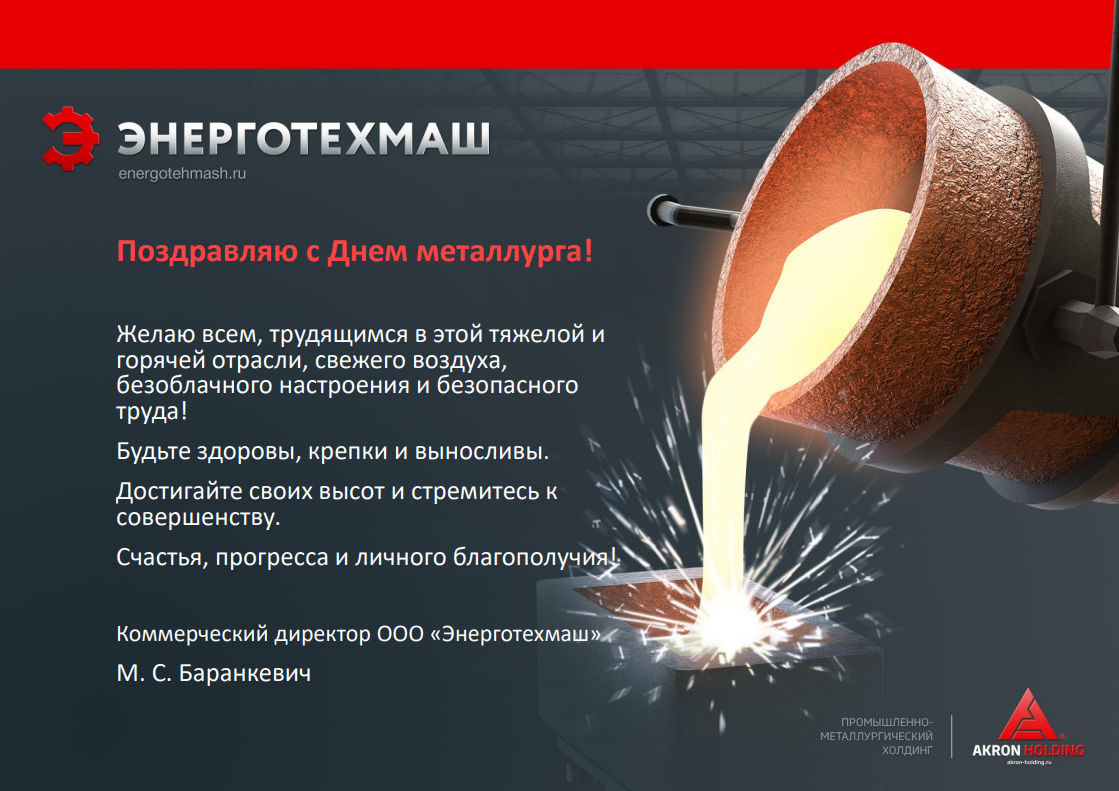 Сегодня, 17 июля почти 2 миллиона Россиян отмечают свой профессиональный праздник. От имени коллектива завода "Энерготехмаш" примите поздравление от Коммерческого директора. Как появился День Металлурга Значение металла в сражениях, в труде или в быту люди поняли еще много столетий назад. В России металлургия как отрасль промышленности родилась на Урале и в Сибири в конце XVIII века. Несмотря на важность металлургической отрасли и людей, которые в ней работали, профессионального праздника тогда не было. После окончания Великой Отечественной войны возникла острая необходимость в скорейшем восстановлении промышленности и сельского хозяйства, восстановлении и укреплении экономики страны. Важнейшую роль в этом играла металлургическая отрасль, которую приходилось расширять и популяризировать, привлекая для работы молодых людей. Профессиональный праздник День Металлурга появился на основании Указа Президиума Верховного Совета СССР от 28 сентября 1957 года. Где и когда празднуют Третье воскре