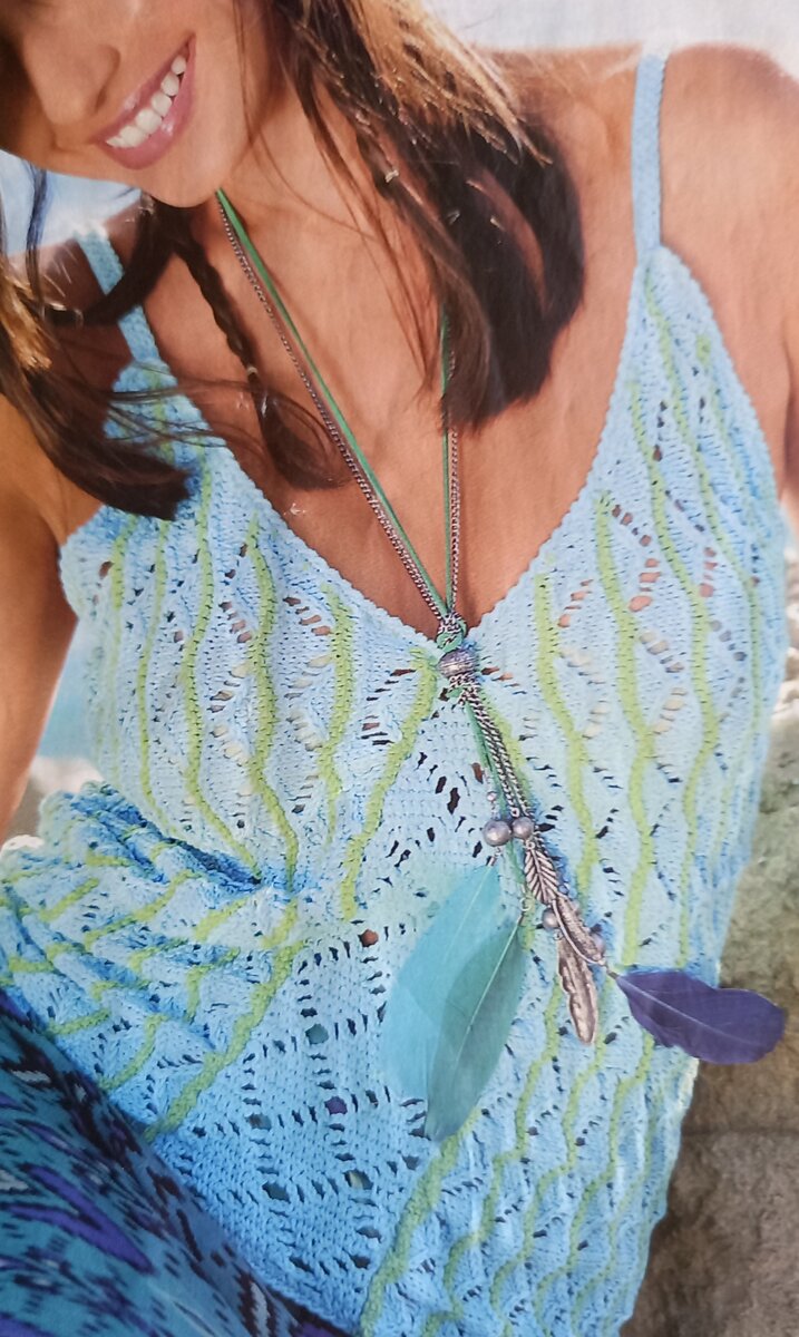 Приветствую всех на канале по вязанию. Хочу сегодня вам предложить связать #маечки и #топы. Такие модели идеальны для летних прогулок. Топы и маечки можно носить как отдельный вариант, так и надевать под #кардиган или #пиджак. Приглашаю вас после прочтения статьи в мои подписчики, а также жду ваших лайков и комментарий. 1. Топ цвета морской пены Красивый ажурный топ нежно-голубого цвета со связанными поперек деталями отлично оживляют узкие салатовые полоски. 2. Удлиненный топ Влюбиться в такой топ просто невозможно. Особенно хорошо он сидит на фигуре за счет лифа из столбиков без накида. Он выгодно подчеркнет силуэт. 3. Топ с кружевной отделкой Когда так гармонично подобраны цвета, простые полосы смотрятся великолепно! Изюминка топ - кружевная отделка пройм и выреза горловины. 4. Двухцветный топ коралловых оттенков Отличную форму гарантирует широкая планка, завершающая эффектный полосатый узор. 5. Летний топ с пуговицами Спокойный оттенок этой модели позволяет сполна насладиться фили