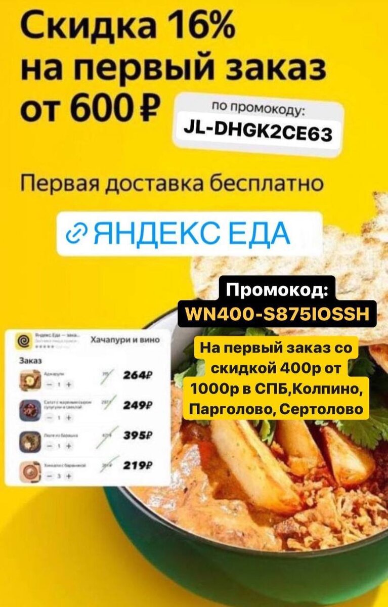 В данном посте расскажем про свежие промокоды на сервисы Яндекса, такие как - Яндекс Еда, Яндекс Лавка, Яндекс Музыка, Яндекс Путешествия, Яндекс Маркет, Яндекс Услуги и многое другое. Для вашего удобства промокоды будут вынесены на отдельные картинки. В комментариях можете делиться недостающими промокодами, внесу их в этот список. Приступим! Промокоды Яндекс Еда на скидку 16% и 400 рублей Скидка 16% на первый заказ от 600 рублей по промокоду: JL-DHGK2CE63 Для тех кто проживает в СПБ,Колпино, Парголово, Сертолово - скидка 400₽ от 1000₽ по промокоду: WN400-S875IOSSH 👉Ссылка на приложение Яндекс Еда Промокод Яндекс Музыка (Яндекс Плюс Мульти + Кинопоиск) БЕСПЛАТНО БЕСПЛАТНО 60 дней на Кинопоиск по подписке Яндекс Плюс Мульти 🔥 промокод👉 J4XYBNKHZU Ссылка на приложение Яндекс Музыка 👈 Акция действует только для новых пользователей по всей России Промокод Яндекс Путешествия скидка 10% Скидка 10% на первое бронирование отеля 🔥 ✅Промокод: PERFL-WXRZY Максимальная скидка п