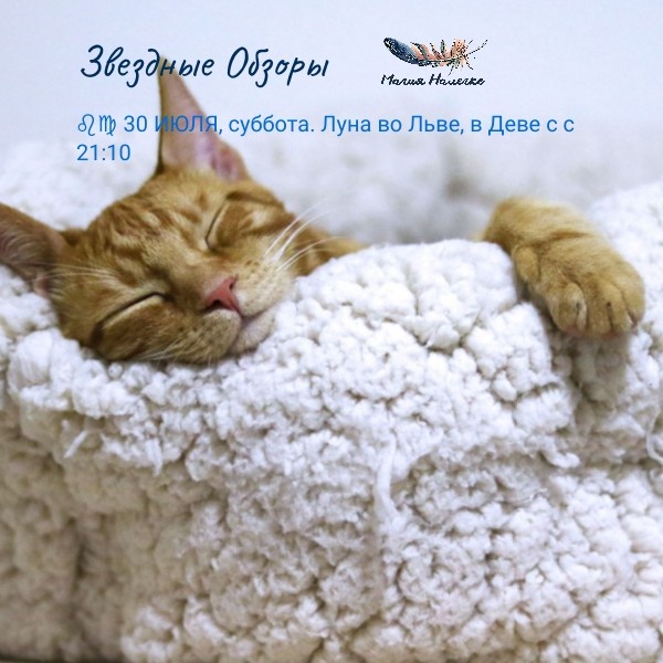 Субботних добрых утр ! Тренды дня: Суббота- день безделья и валяния Ванек. Луна без курса с 07:29 до 21:09, холостая Луна, а это верный признак того, что сегодня надо отдыхать и расслабляться, но не предпринимать ничего важного и нового. Можно и нужно посетить культурные мероприятия или просто прогуляться с детьми в парке. Или махнуть на дачу и томно лежать на гамаке, периодически покрикивая- Захар, квасу налей))) Думаю, каждый умеет валять Ваньку и мять диван- гамак- лежак- кресло так, как будто завтра его продадут. Напрягаться будем . Впереди это самое напряжение еще нас ожидает, поэтому сегодня мы говорим ДА- расслаблению и дарам уходящего на мягких лапках Июлю. Как быстро он, однако, пролетел! «Венчает лето солнечный июль, Он магией живой силен. Теплом и влагой как по волшебству Картины новые рождает он….» Что подарил вам лично этот Июль? Радовал? Огорчал? Удивлял?