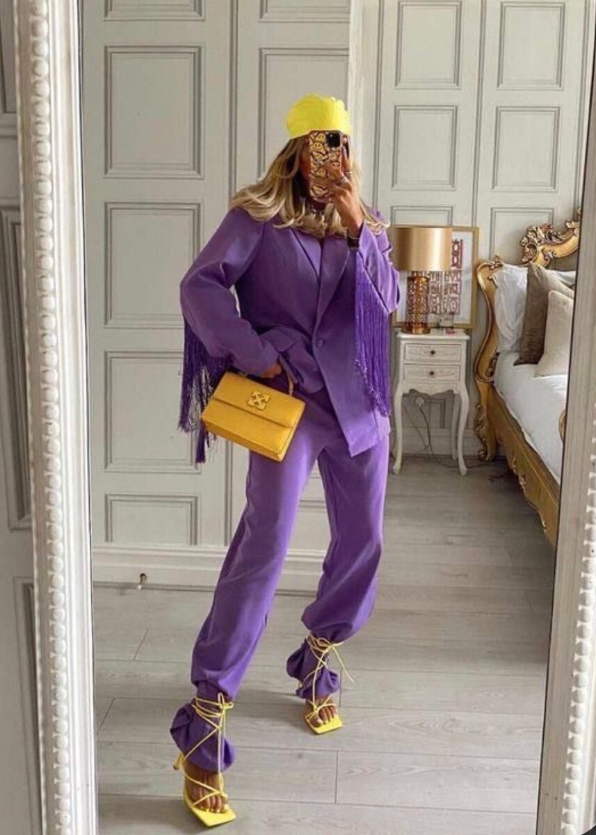Не создавайте «конфликт» цветов в одном образе - держите нейтралитет. Например, разбавьте яркий костюм обычной белой, либо черной футболкой или рубашкой.