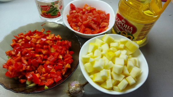 Наше самое любимое и быстрое блюдо в заготовках является Лечо. Готовится очень просто, быстро, а зимой безумно вкусно. Давайте попробуем? Нам необходимо: Подготавливаем все ингредиенты. Подготовить, это помыть, очистить и порезать кубиками, мелко. Готовим кастрюлю, желательно 7 литров. Первым на медленный огонь ставим помидоры и тушим 2 минуты. Далее добавляем перцы. Советую попробовать каждый перец! Мне один раз попался горький и к сожалению 5 литров лечо было отправлено на компостную яму... После перца добавить соль, уксус, масло, горчичный порошок, сахар. Доводим до кипения. Далее добавляем кабачки и тушим 30 минут. Что бы кабачки были более мягкие тушите 40 минут. Обязательно пробуйте лечо на вкус, возможно Вы захотите что-либо добавить. Не забывайте периодически помешивать. За 10 минут до готовности добавляем чеснок. Пока тушится, стерилизуем банки и готовим крышки. По мере готовности распределяем лечо по банкам и убираем под одеяло до полного остывания. Когда баночки остыли,
