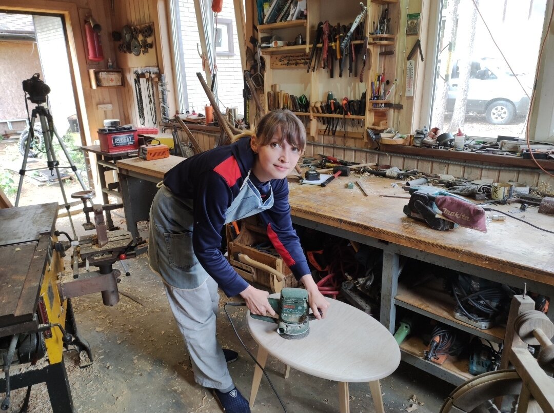 Выходные в родительском загородном доме прошли весьма плодотворно. Дом не обжитой ещё,да и собственно не достроен. Нехватка мебели ощущается довольно остро. По моему заказу мой муж смастерил журнальный столик из берëзовых паллетов и фанеры. В ножки сделал буковые вставки. За мной осталось только вышлифовать столешницу и покрыть лаком. Чем я сегодня и занялась. Столик очень уютный! Обожаю деревянную мебель, от не прямо веет теплом, в ней есть душа. Пока мы разбирались в мастерской со столиком, папа обнаружил на чердаке старинную прялку. Все механизмы рабочие. Но я не умею прясть, да и наверное нет в наше время такой нужды. Думаю, что с ней сделать, чтобы несла не только декоративную функцию, но и утилитарную. Если кто имеет какие-либо идеи, пожалуйста, поделитесь в комментариях. Также продолжили работу над одним из венских стульев. Он, пожалуй, самый потрёпанный из трёх. Отсутствовали элементы спинки, сломана проножка, много загрязнений. Выкрутили ржавые саморезы. Предстоит заделк