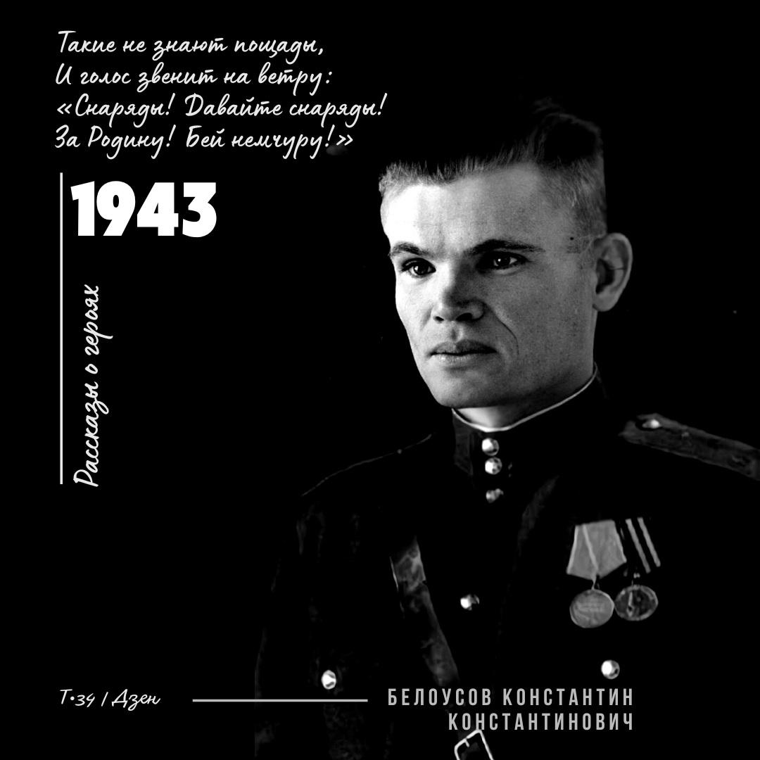 Белоусов Константин Константинович за годы Великой Отечественной войны был награжден двумя медалями: «За боевые заслуги» и «За победу над Германией в Великой Отечественной войне 1941–1945 гг.». Родился 3 апреля 1918 года в Смоленске. В рядах РККА с июня 1941 года. Воевал на Волховском фронте. Летом 1942 года в составе 1238-го стрелкового полка 372-й стрелковой дивизии в звании лейтенанта участвовал в боях в районе деревни Мясной Бор во время операции по выводу из окружения 2-й Ударной армии, за что и был награжден в 1944 году медалью «За боевые заслуги». Был дважды ранен. Из-за полученных ранений офицер Белоусов больше не мог находиться на фронте. И, с сентября 1942 года К. К. Белоусов — преподаватель топографии курсов младших лейтенантов 59-й армии Ленинградского фронта. Но о нем не забыли в дивизии, в которой он участвовал в боях в районе Мясного Бора. И, в январе 1943 года красноармейцы А. Павин (слова) и В. Соколов (музыка) сложили песню о герое-лейтенанте Белоусове. ☆ ☆ ☆ В тяжел