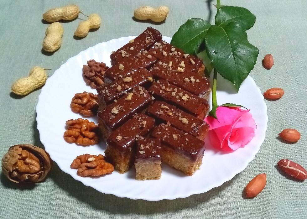 Очень вкусные ореховые батончики, полезные и выгодные - сытные, много не съешь! 😃 Спасибо за отличный рецепт и вдохновение Евгении @Cooking_Fire 🤗🌺 #суббота #вкусно #ппбатончики Ингредиенты: смеси орехов, у меня арахис и грецкие, жареных семечек полсолнуха, мёда, белого шоколада, у меня горький домашнего приготовления Способ приготовления: Орехи очистить от скорлупы, обжарить на сухой сковороде. Дать остыть, руками снять шелуху, она легко снимается. Орехи и семечки измельчить блендером в 2 захода. Можно взять любые орехи, которые вам нравятся. Выложить измельчённую массу в миску, добавить мёд и перемешать. Добавляйте мёда столько, чтобы он пропитал массу из орехов и семечек. Может мёда понадобится чуть больше. Выложить получившуюся массу в форму, застеленную пищевой плёнкой и хорошенько утрамбовать. Белого шоколада у меня не оказалось, а горького всего 1 плитка. Решила приготовить самой шоколад, рецепт выложу чуть позже. Залить шоколадом ореховую массу, распределить его равномерно и