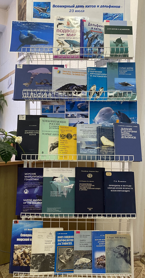 В отделении ЦНБ ДВО РАН при Национальном научном центре морской биологии им. А.В. Жирмунского ДВО РАН открылась книжно-иллюстративная выставка «Всемирный день китов и дельфинов». На выставке представлены издания, посвященные этим удивительным млекопитающим, ознакомиться с которыми можно будет до 29 июля.