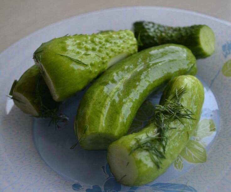 Ингредиенты: Приготовление: Огурцы хорошенько помойте и с обеих сторон у них обрежьте кончики. Чеснок почистите и нарежьте тонкими пластинами. Возьмите пластиковый контейнер и на его дно разложить часть чеснока и веточки укропа. Затем огурцы плотно уложите сверху и остатками чеснока посыпьте их. Если огурцы выкладывать в несколько рядов, то обсыпайте зеленью и чесноком каждый ряд. Соль растворите в минеральной воде, после чего ею залейте огурцы так, чтобы рассол полностью их закрывал. Затем крышкой закройте контейнер и на 15 часов поставить в холодильник. По истечению этого времени вы получите готовые хрустящие малосольные огурцы. Приятного аппетита. Если понравился рецепт, то ставьте лайк и подписывайтесь на канал!