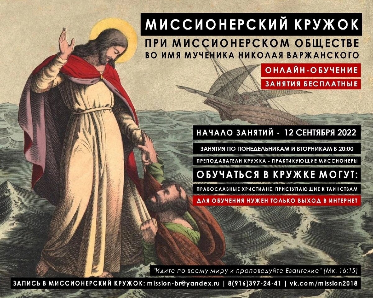 Согласно словам Спасителя, без православной веры и Крещения человек не может получить спасение и наследовать Царство Божие (Мк. 16:16, Ин. 3:5). Вокруг нас множество людей, которых не коснулся Свет Христовой Истины. Без покаяния и надежды на Единственного Искупителя их ждет вечная смерть. Но каждый из нас, имея Божий призыв возвещать Евангелие (Мф. 28:19), может вырвать погибающего из лап дьявола. Для этого Церковь посылает миссионеров (Рим. 10:15) – людей, которые проповедуют Слово Божие всем, кто находится за пределами Святого Православия. ☘Миссионерский кружок при Миссионерском обществе во имя мученика Николая Варжанского объявляет набор на онлайн-обучение на 2022-2023 гг. Кружок готовит православных миссионеров, которые смогут нести послушания на приходах, в епархиальных структурах, содействовать проповеди Православия за рубежом. ☘В кружок принимаются православные христиане, регулярно участвующие в Таинствах Церкви. Особенностью обучения в Миссионерском кружке является то, чт