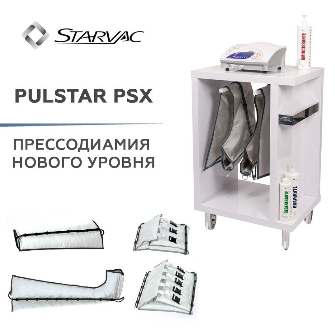 Премиум-бренд Starvac разработал профессиональный аппарат для прессодинамии Pulstar PSХ, с помощью которого будет происходить максимально эффективное лимфодренажное воздействие! Уникальная запатентованная технология Active Wave в аппарате Pulstar PSX — эффект волновой пульсации позволяет добиться наиболее быстрого улучшения кровообращения на микроциркуляторном уровне, что в свою очередь значительно ускоряет снятие проявлений отечности, застойных явлений. ⠀ Работа аппарата имитирует мышечные сокращения: посекционное сдавливающее воздействие стимулирует выведение жидкостей из межклеточного пространства в лимфатические пути и дальнейшее движение лимфы от периферии к проксимальным точкам (эффект мышечной помпы). ⠀ Кроме лимфодренажа, прессодинамия с успехом может использоваться для: ⠀ - Уменьшения целлюлита; - Моделирования силуэта; - Укрепления тканей (улучшение тургора и тонуса тканей); - Восстановление после заболеваний дыхательной системы; - Снятия отечности нижних конечносте