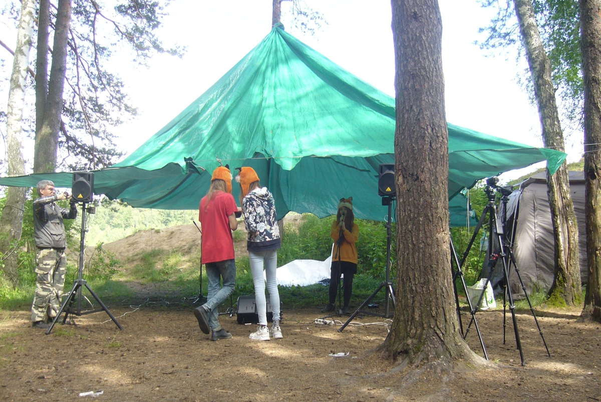 Ночные посиделки и сон на рассвете, готовка еды и её последствия, встречи новых и новых лиц, песни – всё это закончилось. Ну, кроме песен. Начался фестиваль, начался концерт. Установленный тент исполинских размеров укрыл собою аппаратуру, в соседней палатке спрятался электрогенератор.