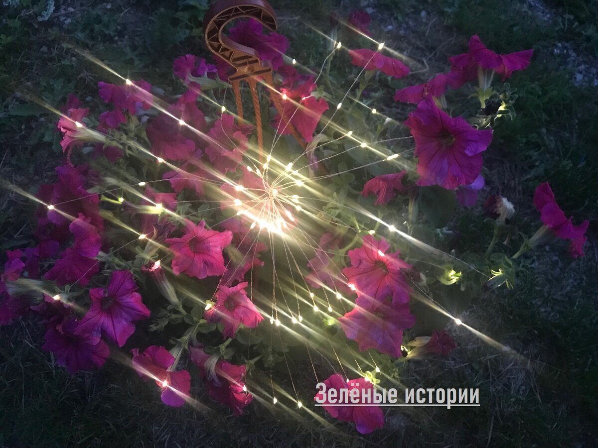 Обустройство придомовой территории - это очень приятный процесс. У нас он хоть и со скрипом, но движется. Вот такой вот фейерверк у меня получился Недавно задумалась об освещении территории и стала искать подходящие варианты. У нас нет проблем с подключением к электросетям. Электричество в дом заведено. Но счета за электроэнергию при освещении всего одним прожектором двора очень удручают. Так выглядит в гладиолусах Поэтому решено искать более экологичные для природы и кошелька решения. Выбор пал на освещение, работающее на солнечных батареях. Пока что тестирую разные устройства. Заказала на известном всем маркетплейсе светильник «фейерверк» - захотелось попробовать использовать в крупных кашпо в цветах. Чтобы ночью тоже была видна красота горшечных растений. В общем, купила, попробовала и он меня ничуть не разочаровал. Скорее всего, буду заказывать такие же и на остальные кашпо. Тем более, что нашла где купить такие же, но намного дешевле и выгоднее по условиям. Но об этом позже. Пока