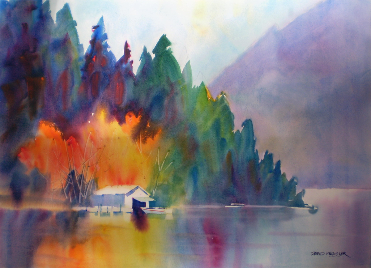 Вот и все, тоновый эскиз готов. Метод использования четырех тонов настолько прост, что для создания тонового эскиза с его помощью вам потребуется всего лишь нанести три слоя акварельной краски. Такой эскиз обычно занимает около пяти минут по завершении работы над скетчем. Помните, что эскиз не является законченной картиной, это всего лишь средство планирования будущего изображения. Сосредоточьте внимание на обозначении форм и создании контраста, не беспокоясь о том, что вы можете выйти за какие-либо рамки. После того как вы создадите тоновый эскиз, ваша картина будет завершена на 85%, потому что вы разработаете дизайн изображения и продумаете, как будут расположены тона. Тогда вы сможете расслабиться и приступить к работе с насыщенными цветами, как на готовой картине ниже.