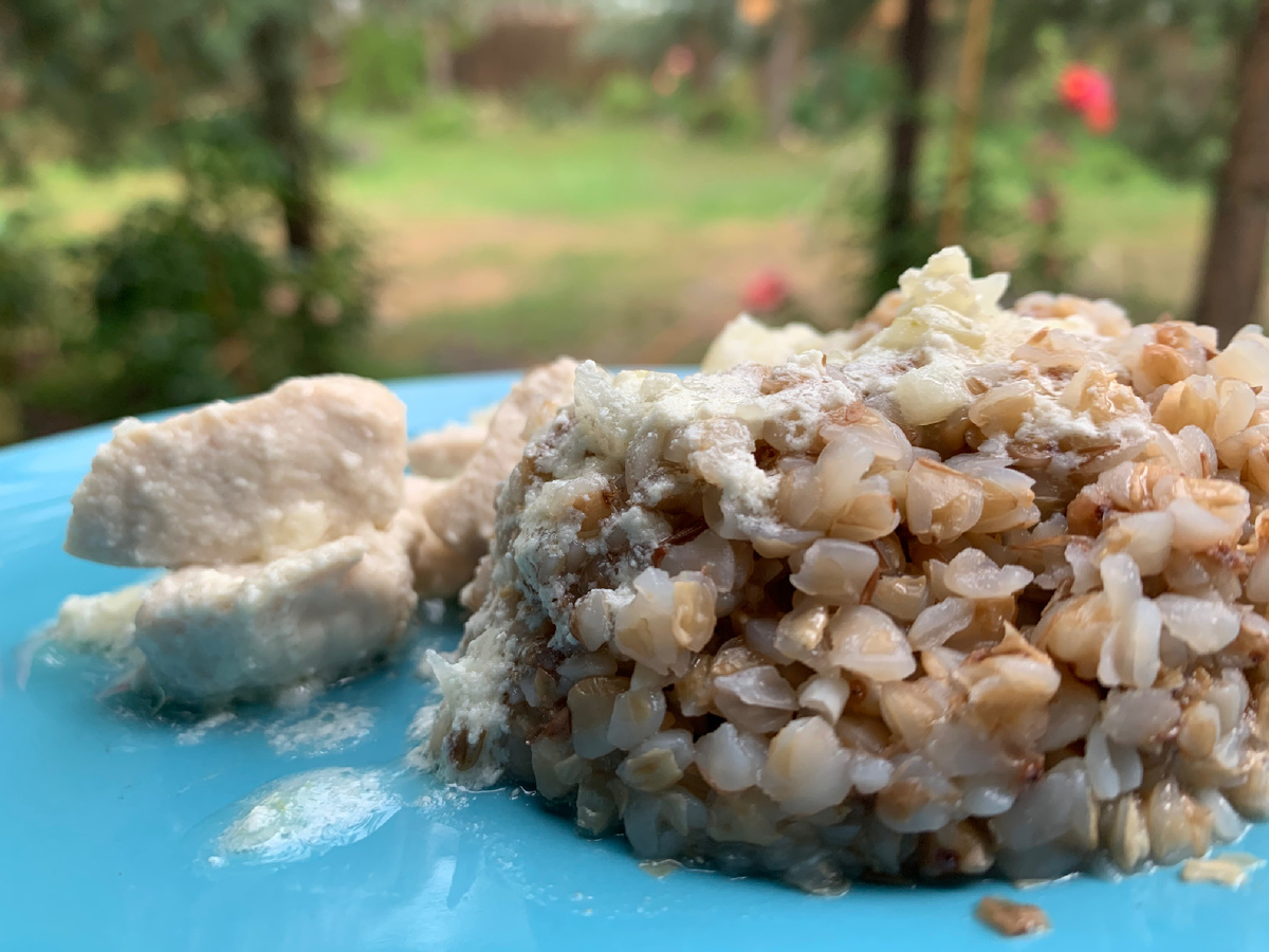 Приготовим невероятно нежную курочку в сметанном соусе? Берём 400 грамм куриного филе, нарезаем, выкладываем на сковородку с подсолнечным или оливковым маслом. Добавляем одну небольшую, мелко преданную луковицу. Режем мелко 2 зубчика чеснока и смешиваем его с двумя ложками сметаны, затем добавляем примерно полстакана воды и хорошо перемешиваем. Проучившуюся смесь вливаем к курице, перемешиваем и ставим под крышу на средний огонь, примерно на 15-20 минут, переодически помешивая и при необходимости долевая воды. Не забываем посолить по вкусу (у меня это примерно чайная ложка). Через 10 минут можно добавить небольшой кусочек сливочного масла. По готовности, Вода должна почти вся испариться. Останется соус) Отвариваем гречку или любой другой гарнир и подаём на стол. Приятного аппетита! P.S. Подпишись, готовим вкусно, просто и из доступных ингредиентов ♥️