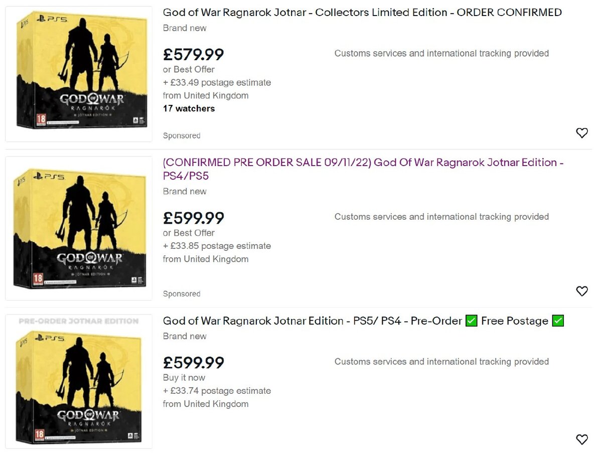 Коллекционки God of War Ragnarök перепродают на eBay. Цена — в два раза выше официальной.