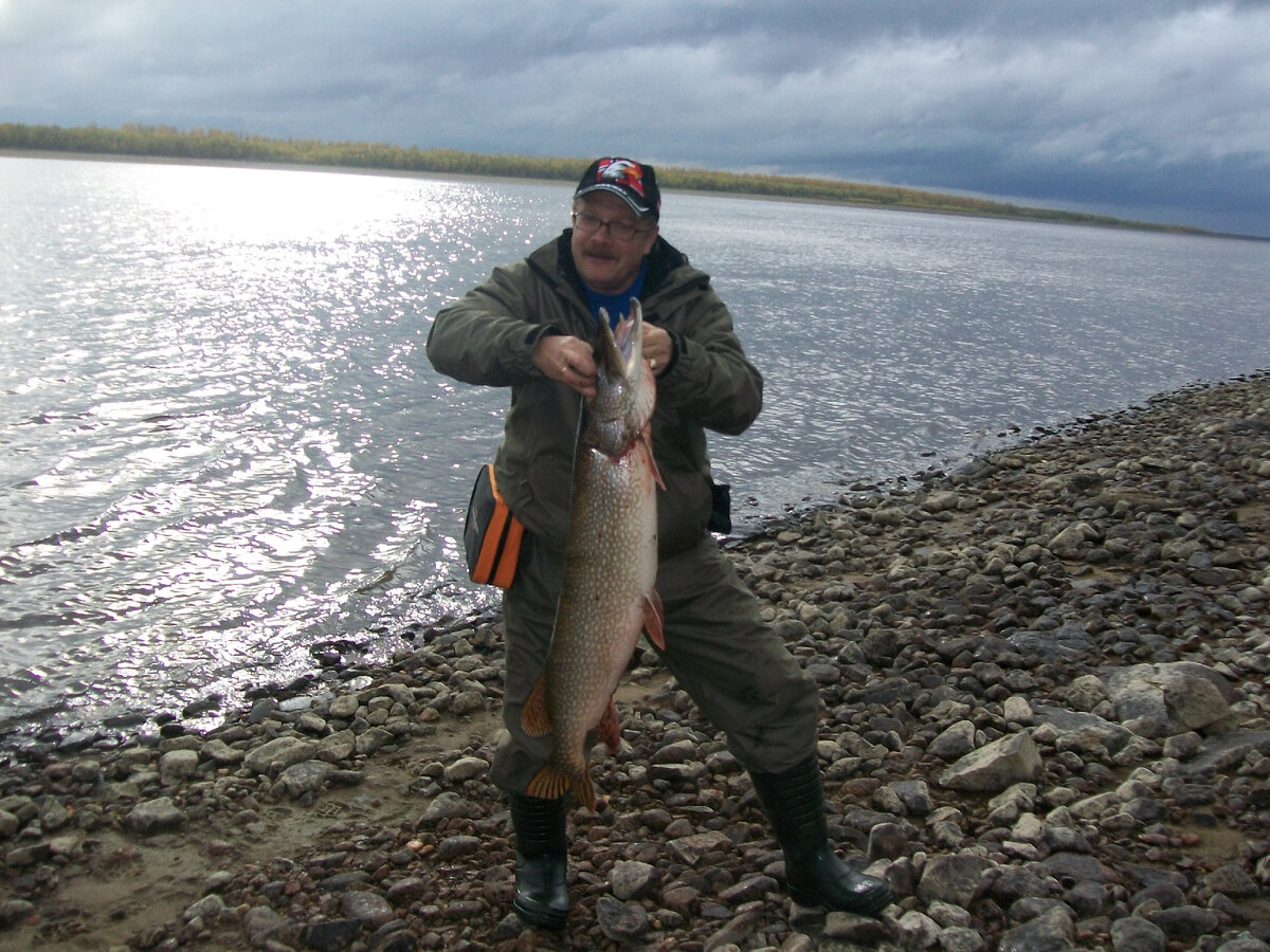 На рыбалке Не было клёва. И не жалко, Нам было клёво. Вот так вот, в одном предложении, я целое четверостишие спрятал, "производства" одного из участников нашей эпопеи. Он же и оказался самым удачливым в плане трофейной рыбалки. Итак, начиналось всё многообещающе... Несмотря на "осеннюю", в июле (!), дождливую погоду, практически первые же забросы с берега Иртыша в районе впадения в него реки Аралки принесли долгожданный результат! Вот она, щука на пятнашку и её счастливый "поимщик"! Однако, по порядку... В первый день по приезду в Уки мы просто отдыхали. Не просто,конечно, но отдыхали. В баньку сходили, попарились, попья... в смысле, попили чайку. В общем, культурно отдыхали. А что вы хотите, 828 километров - это вам не баран Кигну. В смысле, не баранки гну! Бывало, конечно, и больше, но и это расстояние тоже ого-го-го! На второй день Валиулла, к кому мы собственно и приехали, прокатил нас по самым уловистым местам. Прокатил не в смысле "прокатил", а сделал вывозку на лодке с тем, ч