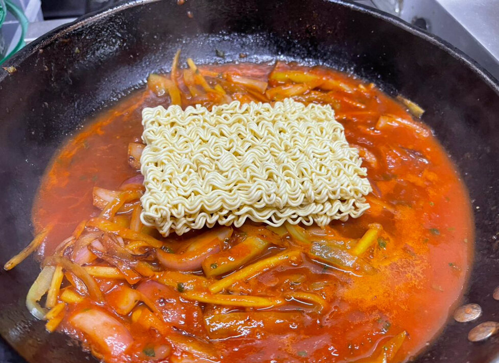 Привет друзья! Вы на канале "Кухня изнутри". Сегодня я покажу вам альтернативный рецепт лапши бысрого приготовления. Его мне показал мой знакомый повар из Кореи Стас. Кстати, фамилия у него интересная, просто Ю. Всего одна буква в фамилии. До сих пор привыкнуть не могу. При обычном приготовлении, если это можно так назвать, Дошик или любая другая лапша сначала заливаются кипятком с добавлением специй, что идут в комплекте. А затем каждый доводит его до своего уровня. Кто во что горазд. Кто-то мазика добавляет, кто-то помидор с сосисками.