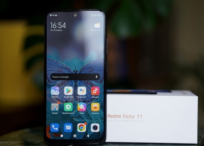 В Redmi Note 11 установлен тот же дисплей, что и в POCO M4 Pro: AMOLED, диагональ 6,43 дюйма, разрешение 2400 × 1080 точек (плотность пикселей — 401 ppi) и поддержка повышенной частоты обновления (90 Гц).