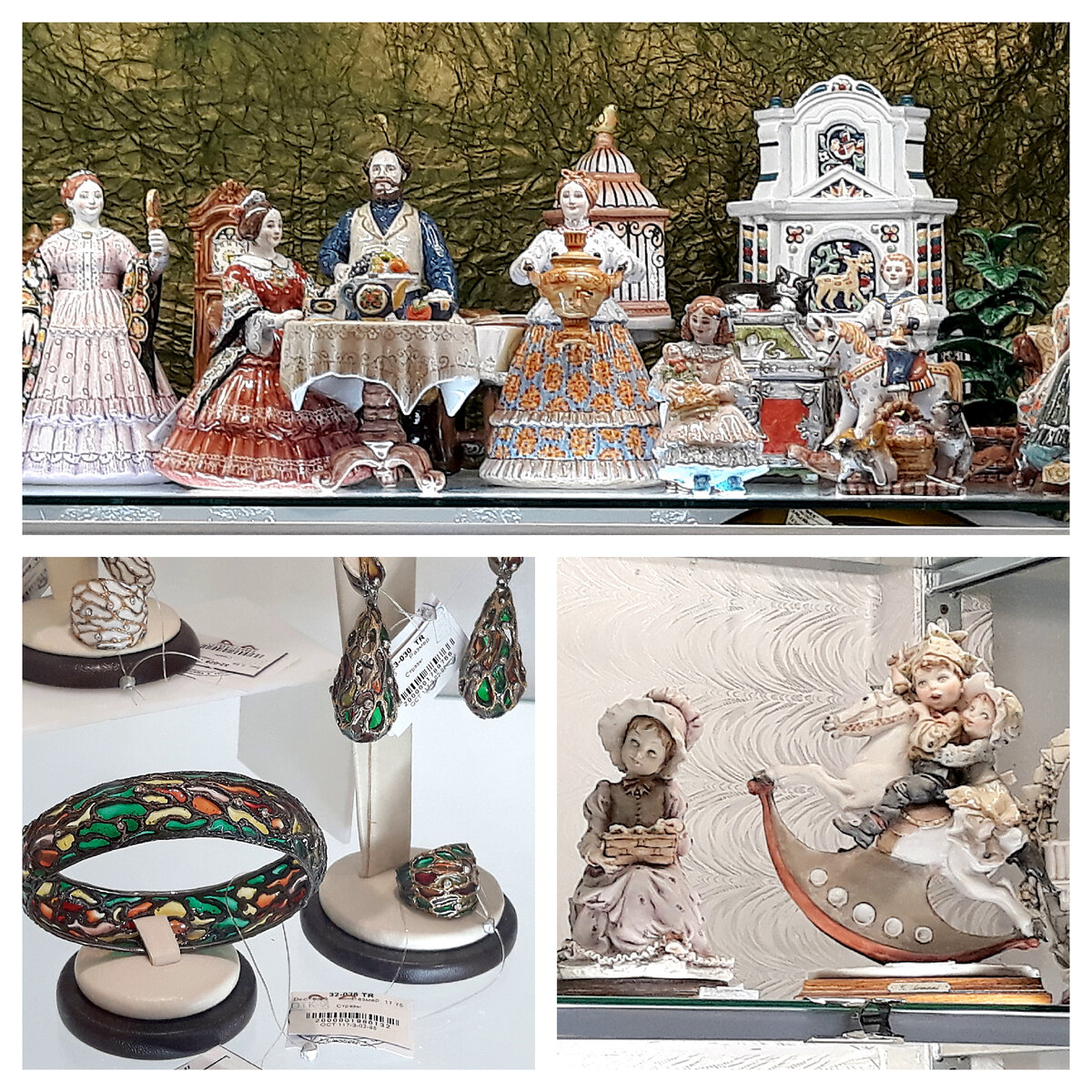 В предыдущей статье я рассказала о магазине "Камневеды", который находится в Доме Художника на Кузнецком Мосту (г. Москва). Магазин расположился в салоне "Подарю". На днях я снова побывала в нем, и мне захотелось немного рассказать вам о том, что же это за салон такой необычный Особенно интересно бывать здесь в канун праздников - открываются дополнительные помещения, и бродить можно долго. Но и в обычные дня побывать в этом салоне стоит - он очень уютный, и даже атмосфера тут особенная - творческая Уже не помню кто окрестил это место "Лавкой чудес". Сюда мастера, художники и просто творческие люди приносят изделия, сделанные своими руками. Это те вещи, которые не купишь в обычном магазине (листайте вправо) Здесь всегда можно примерить авторскую одежду, присмотреть для себя красивый платок - павлово-посадский или шелковый, украшенный ручной росписью (листайте вправо) Или подобрать сумочку из натуральной кожи. Сумки всегда разные - бывает, что принесут такие, что долго потом забыть не мо