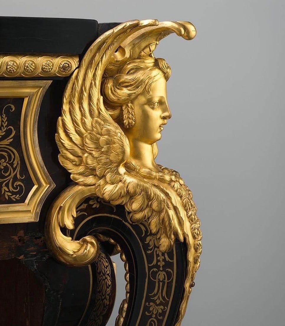 В своих работах Буль сочетал разные материалы: индийские и южноамериканские породы дерева, панцирь черепахи, слоновую кость, перламутр, латунь и другие материалы.