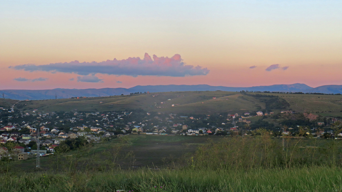 Она всегда появляется неожиданно, откуда не ждешь. Так и в этот вечер полнолуния 13 июля 2022 года я ждала ее то ли из-за нагорья Тырке, то ли над Демерджи-яйлой. В общем откуда-то оттуда: Симферополь расположен между Внешней и Внутренней грядами Крымских гор. Горы полуострова с пологими северными и крутыми южными склонами будто волны застывшего моря устремляются к Черному морю. Такая форма рельефа носит испанское имя "куэста", что в переводе звучит просто "склон", "откос". Всего 5 км от дома из душного, пыльного южного города на велосипеде вверх по пологому северному склону через полосу сосновых лесопосадок и небольшое село Залесье, до которого ходит городская маршрутка, и я на краю череды этих самых куэст. Дальше, меж хребтов и балок, простираются поля, отделяющие Внутреннюю от самой высокой Главной гряды. Внизу лежат год от года расширяющиеся села Симферопольского района. Здесь подо мной село Украинка. Летний день догорал огненным закатом отражаясь золотом в спелых колосьях ржи межд