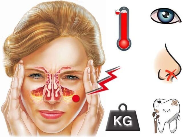 - Болезненность в переносице, снижение обонятельной функции, рецидивирующий гайморит.