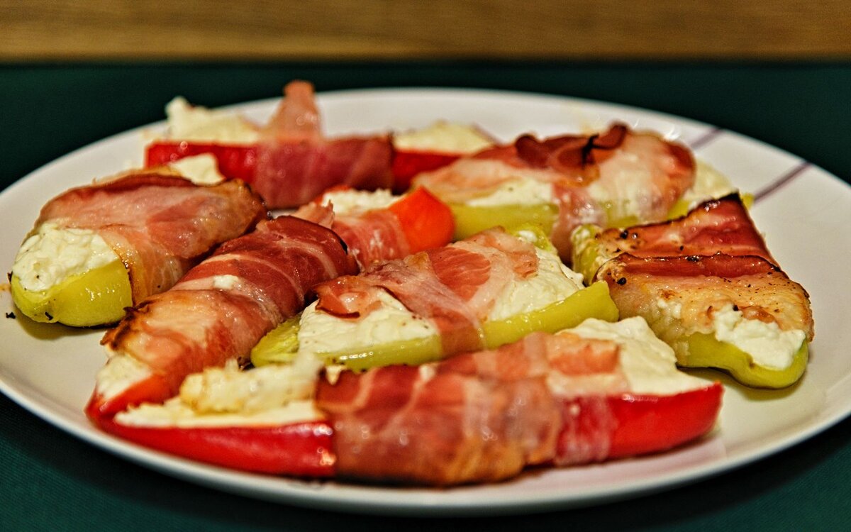 «Лодочки» из сладкого перца с творожным сыром и беконом